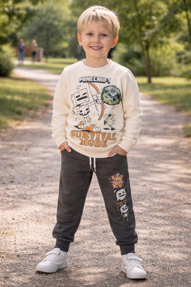 Jogging enfant garçon Minecraft Beige et Gris