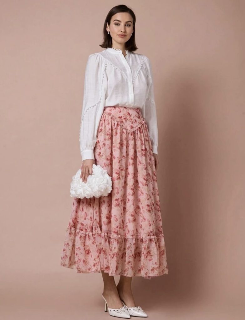 Enchnt Jupe courte casual évasée à imprimé floral tout-sur-tout pour femmes