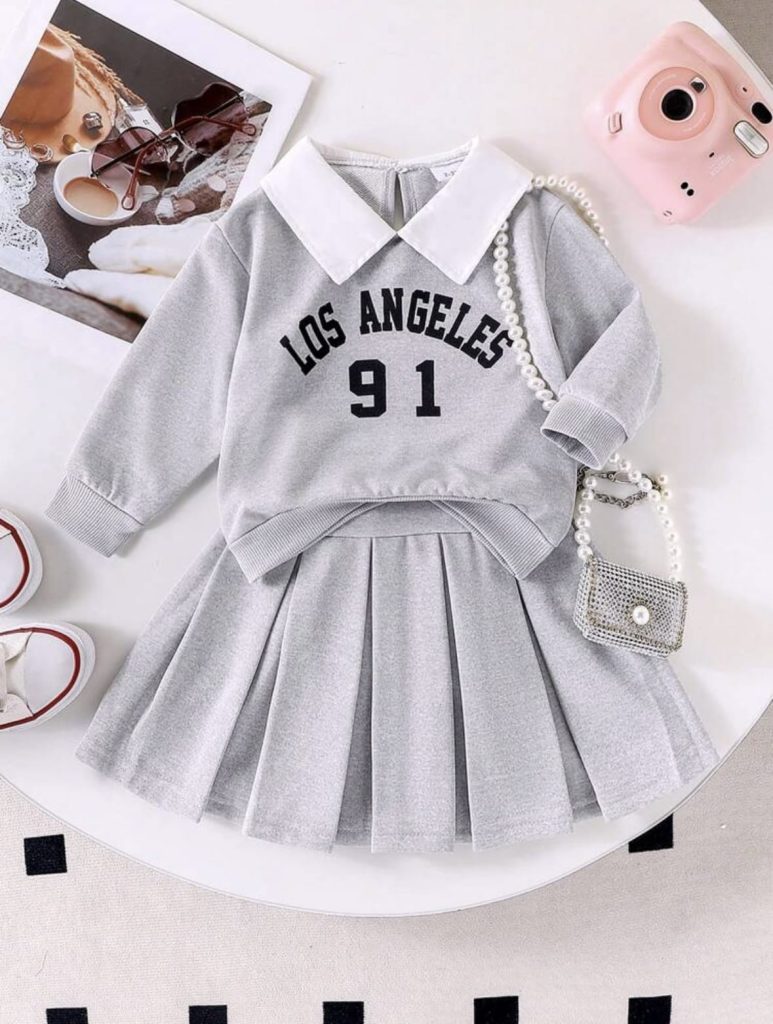 2 pièces Ensemble de style scolaire décontracté pour jeune fille, avec sweat-shirt à col imprimé lettres et jupe plissée, printemps et automne