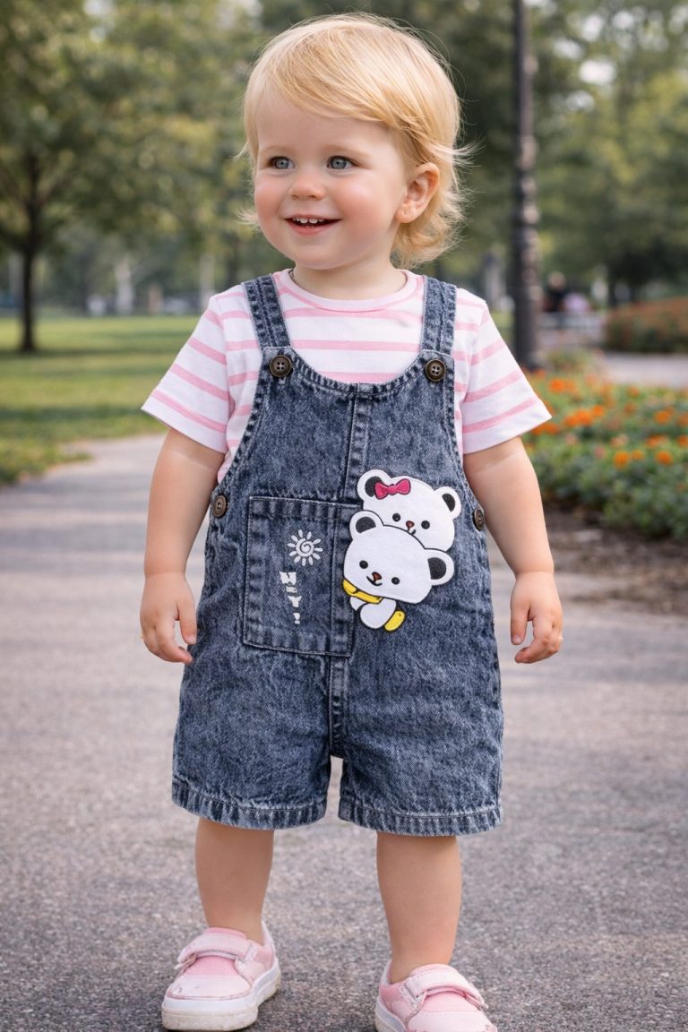salopette jean ourson avec t-shirt rose