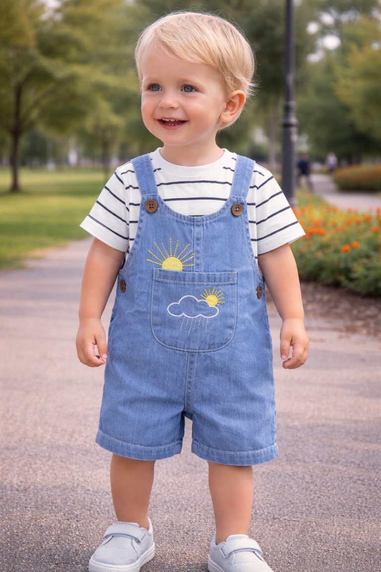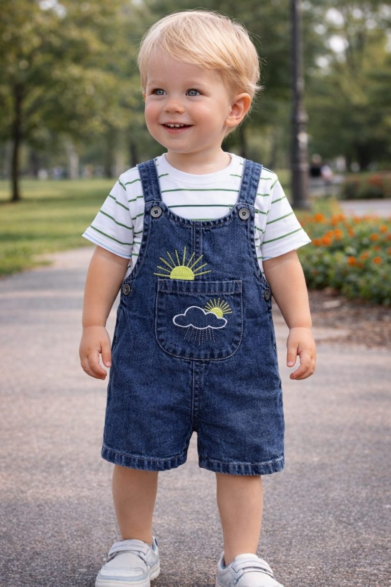 salopette jean clair soleil avec t-shirt