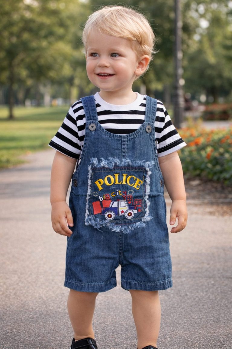 Jolie salopette jean police avec t-shirt