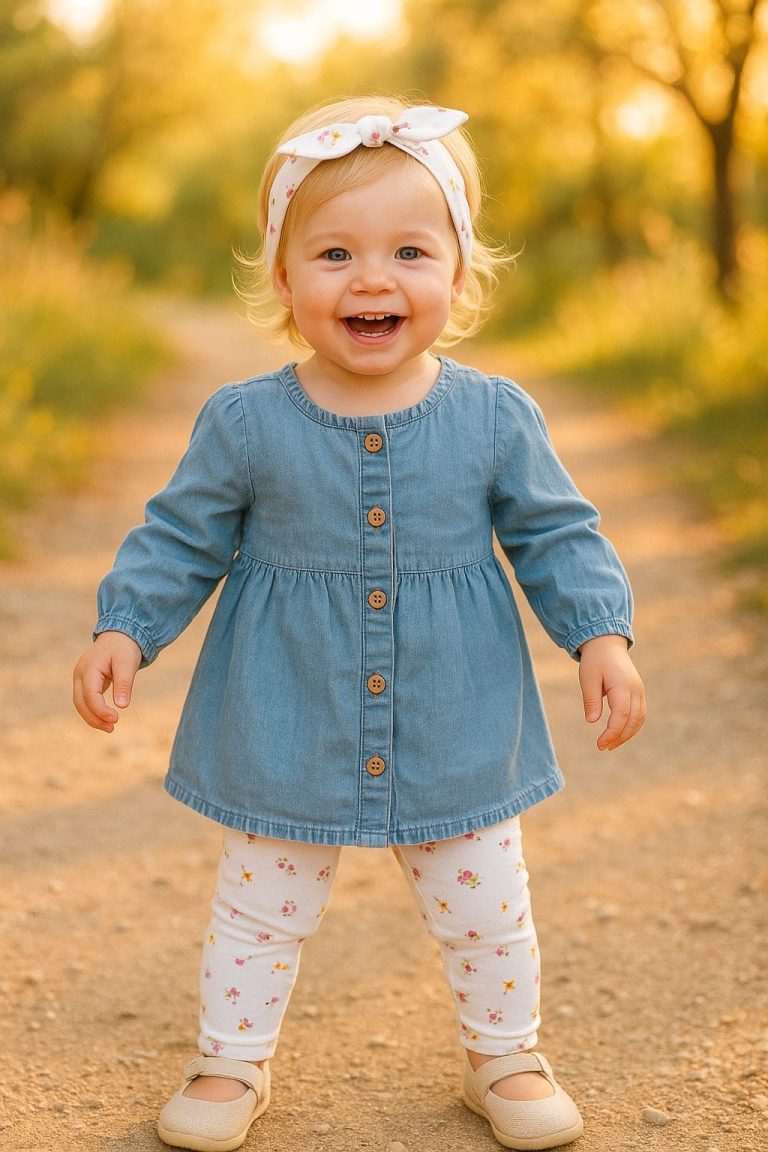 Ensemble fille pantalon robe Jean et bandeau