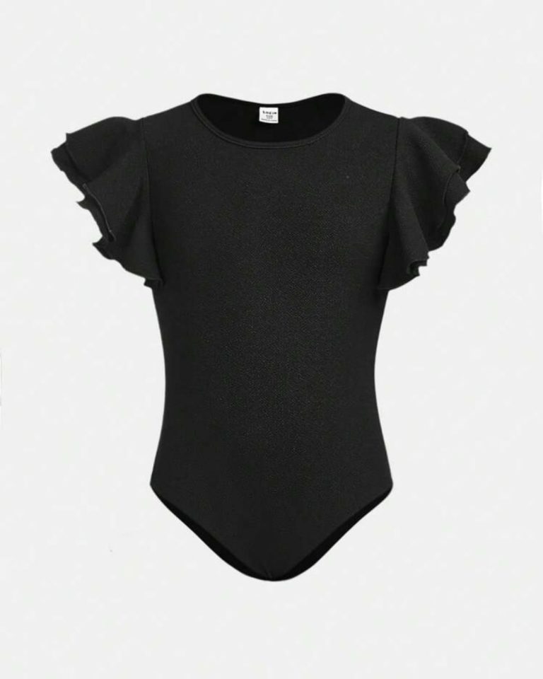 SHEIN Girlism Bodysuit Décontracté À Manches Volantées Courtes Et En Tricot Pour Fille Préadolescente Couleur Solide