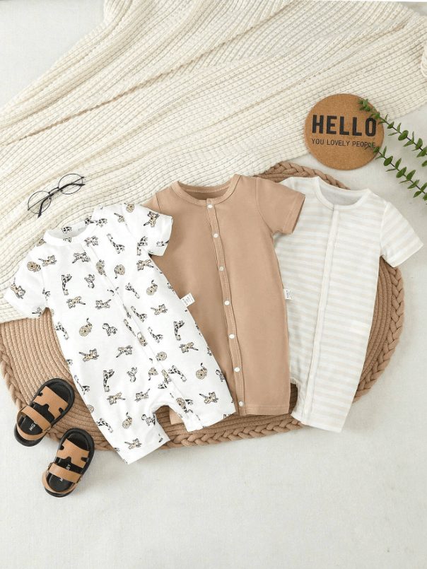 Ensemble de 3 barboteuses décontractées à rayures