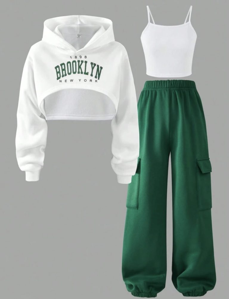 Streecool Kids 3 pièces/set Sweat-shirt tricoté imprimé de lettres avec doublure thermique, débardeur et pantalon cargo pour préadolescentes, automne/hiver