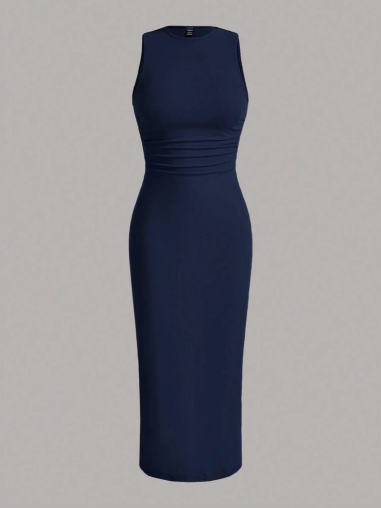 SHEIN EZwear Robe d’été avec taille froncée unie, robes d’été pour femmes