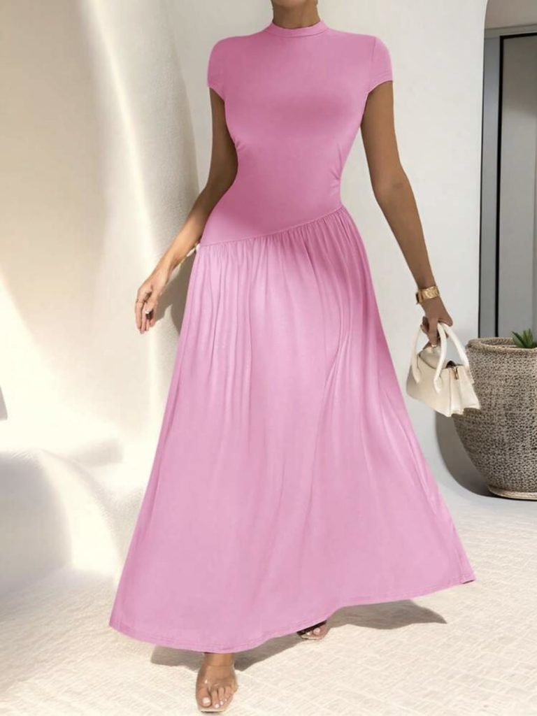 Firerie Robe asymétrique élégante minimaliste à porter au quotidien, avec col montant ajusté, manches courtes et ligne A à la taille, dans une couleur unie