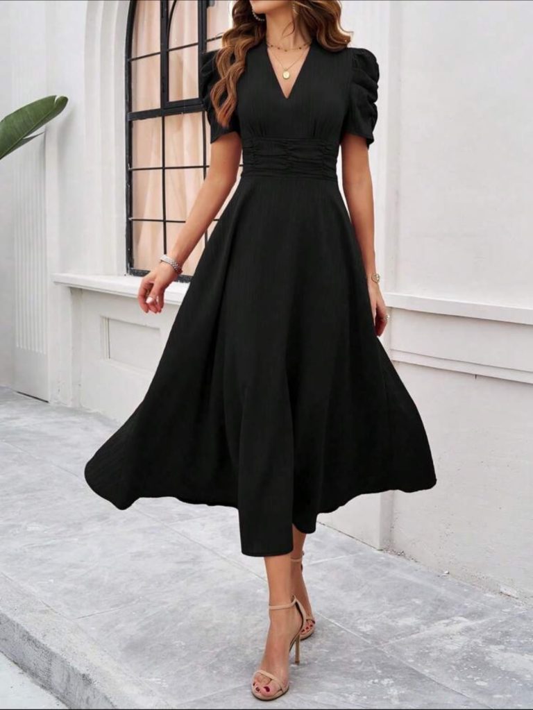 Robe longue évasée avec manches bouffantes