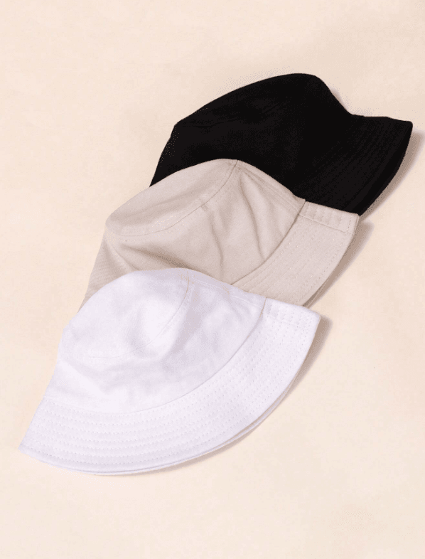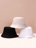 3pcs/Set Unisex Solid Color Black, White, And Beige Flat Top Bucket Hat For Spring And Autumn