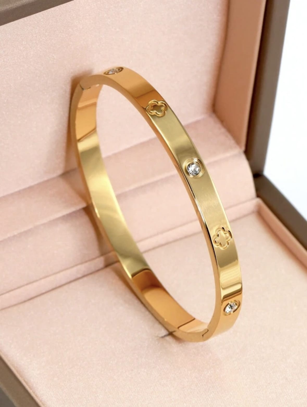 4 pieces Bracelets rigides en acier inoxydable plaqué or 18 carats pour femmes , design de fleur de tréfle à 4 feuilles en zircone cubique brillante , convient pour un port quotidien