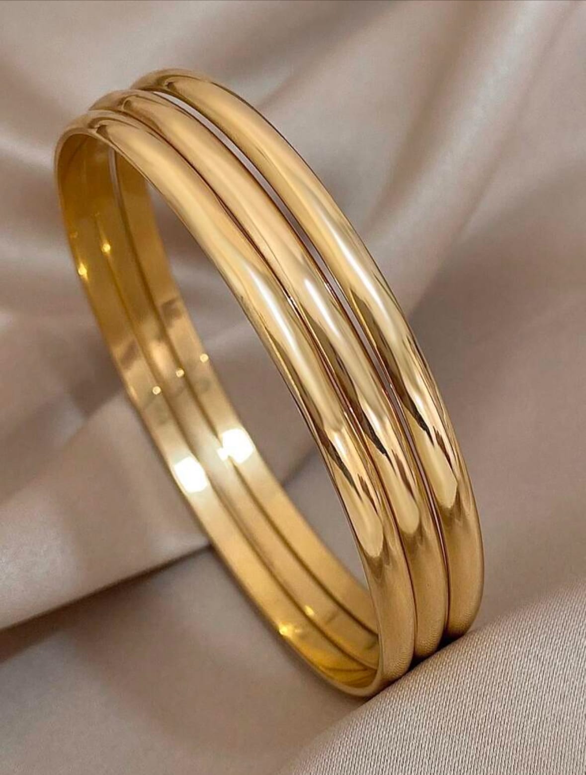 3 pièces/set Bracelets joncs dorés unis pour femmes, poignets fins pour adolescentes, bracelets en acier inoxydable minimaliste pour usage quotidien et fête, cadeaux de Noël