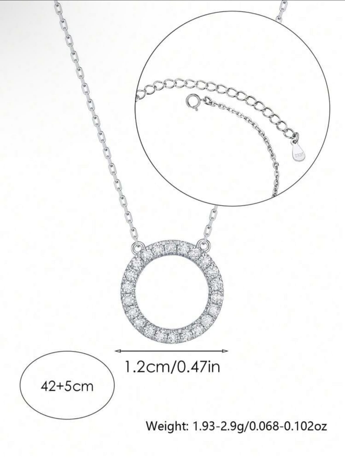 Collier zircone cubique cercle breloque argent.