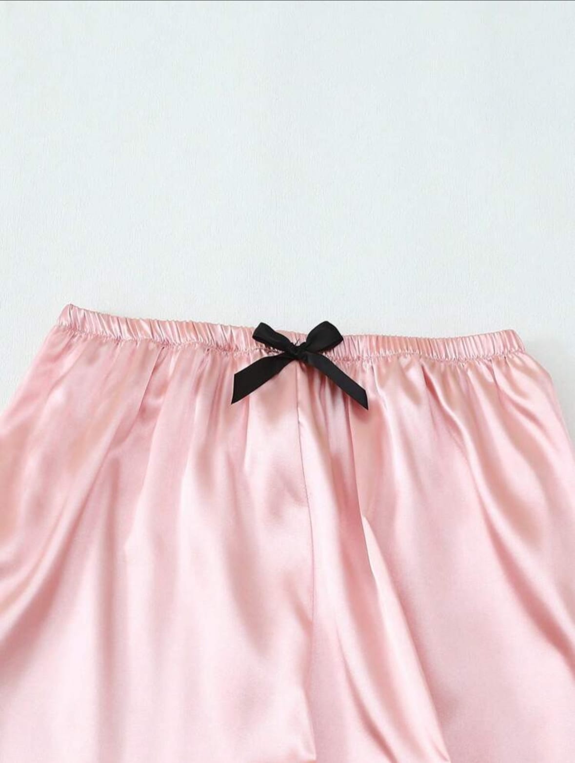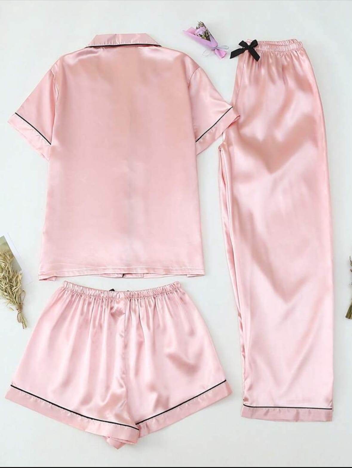 Ensemble de 3 pièces en satin avec Top à boutons devant à manches courtes et short/pantalon long. Ensemble de pyjama/vêtement d’intérieur pour femmes, à porter au printemps/été à la maison.