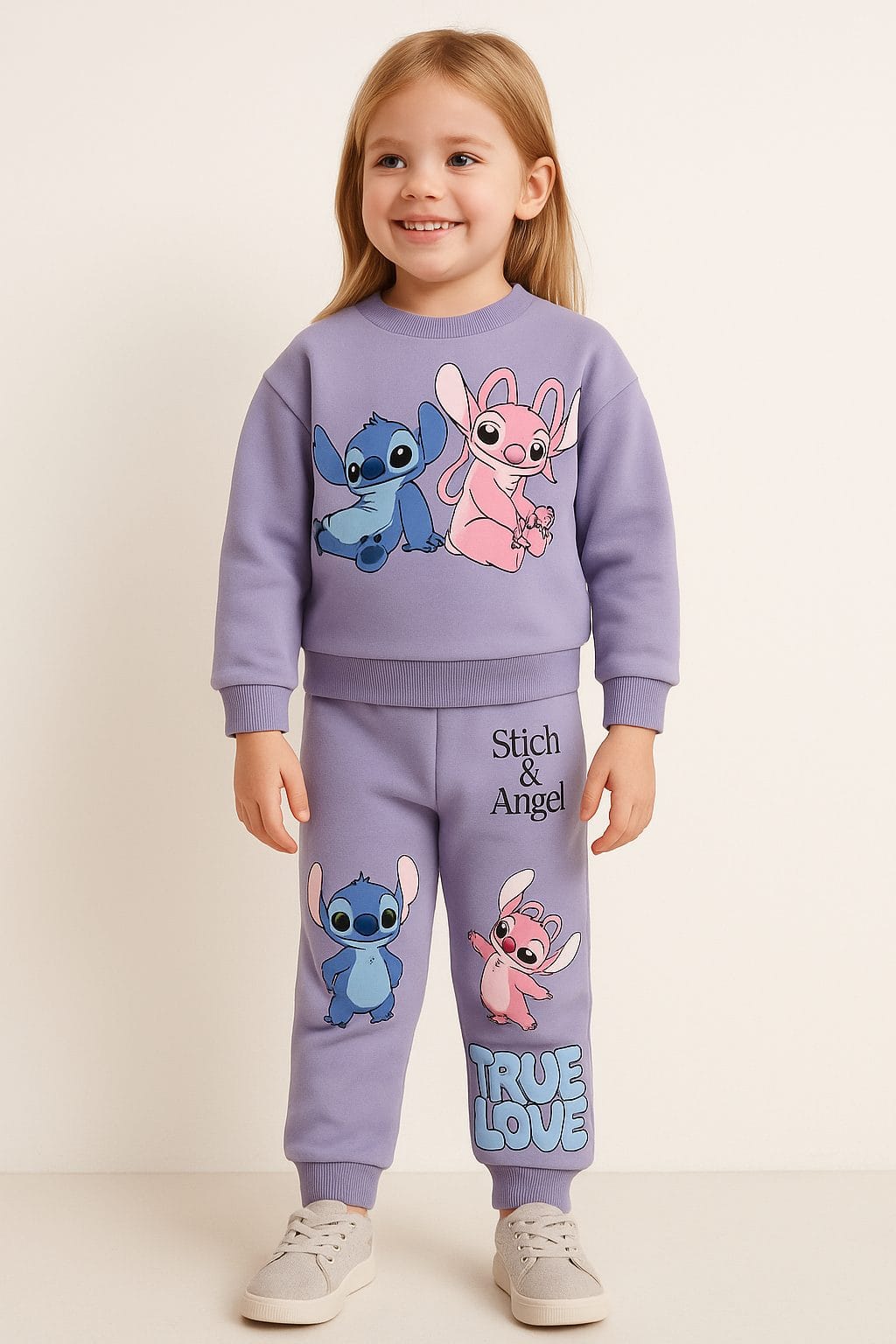Jogging fille stitch Violet avec capuche