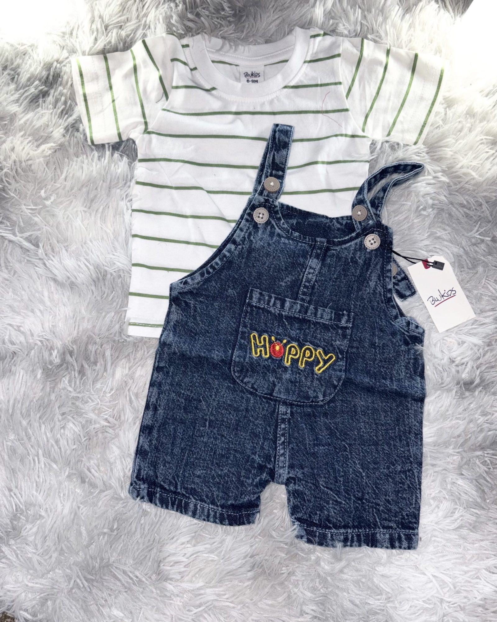 Jolie salopette jean foncé happy avec t-shirt