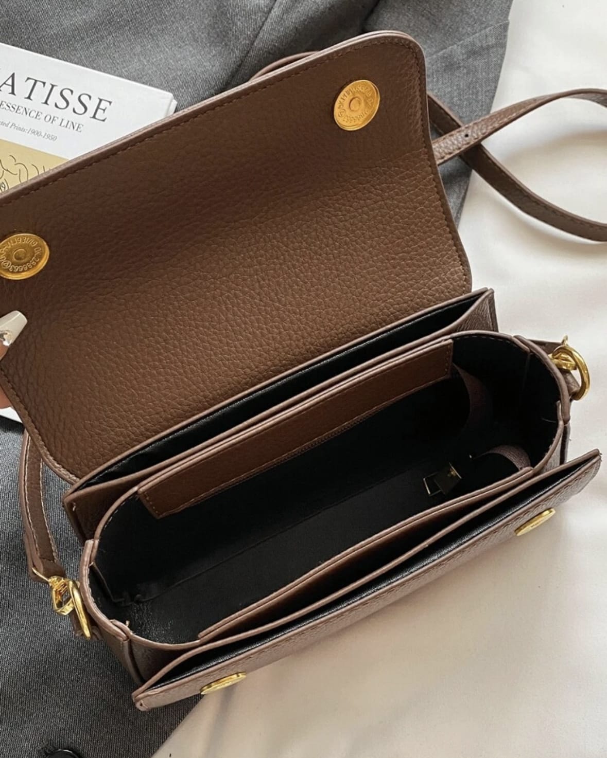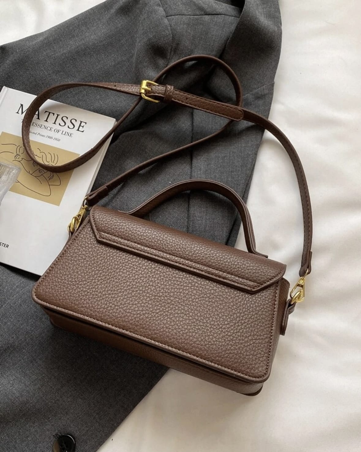 Mode classique Joker Couleur unie Tissu en PU imperméable, Décoration de motif de lettre, Sac à main élégant rétro, Sac carré, Peut être porté en bandoulière, Convient pour une utilisation lors du Nouvel An, des voyages, des achats et des cadeaux de vacances.