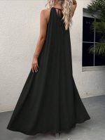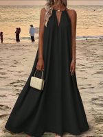 Breezaya Robe longue évasée, col ras-du-cou simple, tenue de plage de vacances pour femmes, couleur unie.