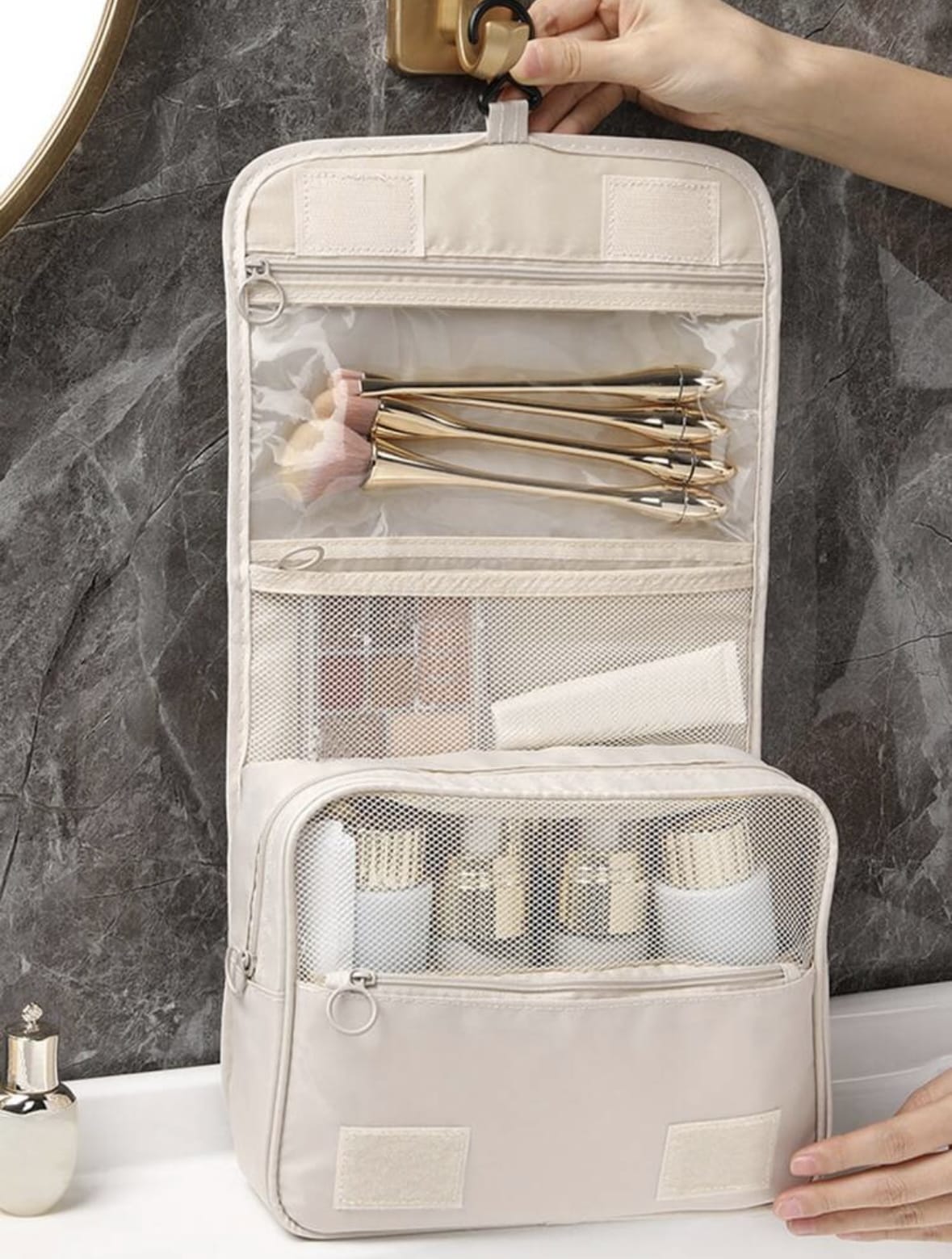 Sac De Maquillage Suspendu Graphique De Lettre, Sac De Maquillage Imperméable, Sac De Toilette, Fournitures Scolaires, Trousse D’école Pour Dortoir Universitaire Pour Étudiant, Organisateur De Maquillage Essentiel Pour Croisière, Sac De Lavage, Rangement De Maquillage, Sac Cosmétique Pour Salle De Bain, Voyage, Dortoir Universitaire Pour Femmes, Cadeau Pour Fille, Sac De Plage, Accessoires De Plage, Organiseur D’essentiels De Plage, Serviette De Plage, Sac De Vacances, Accessoires Essentiels Pour L’été