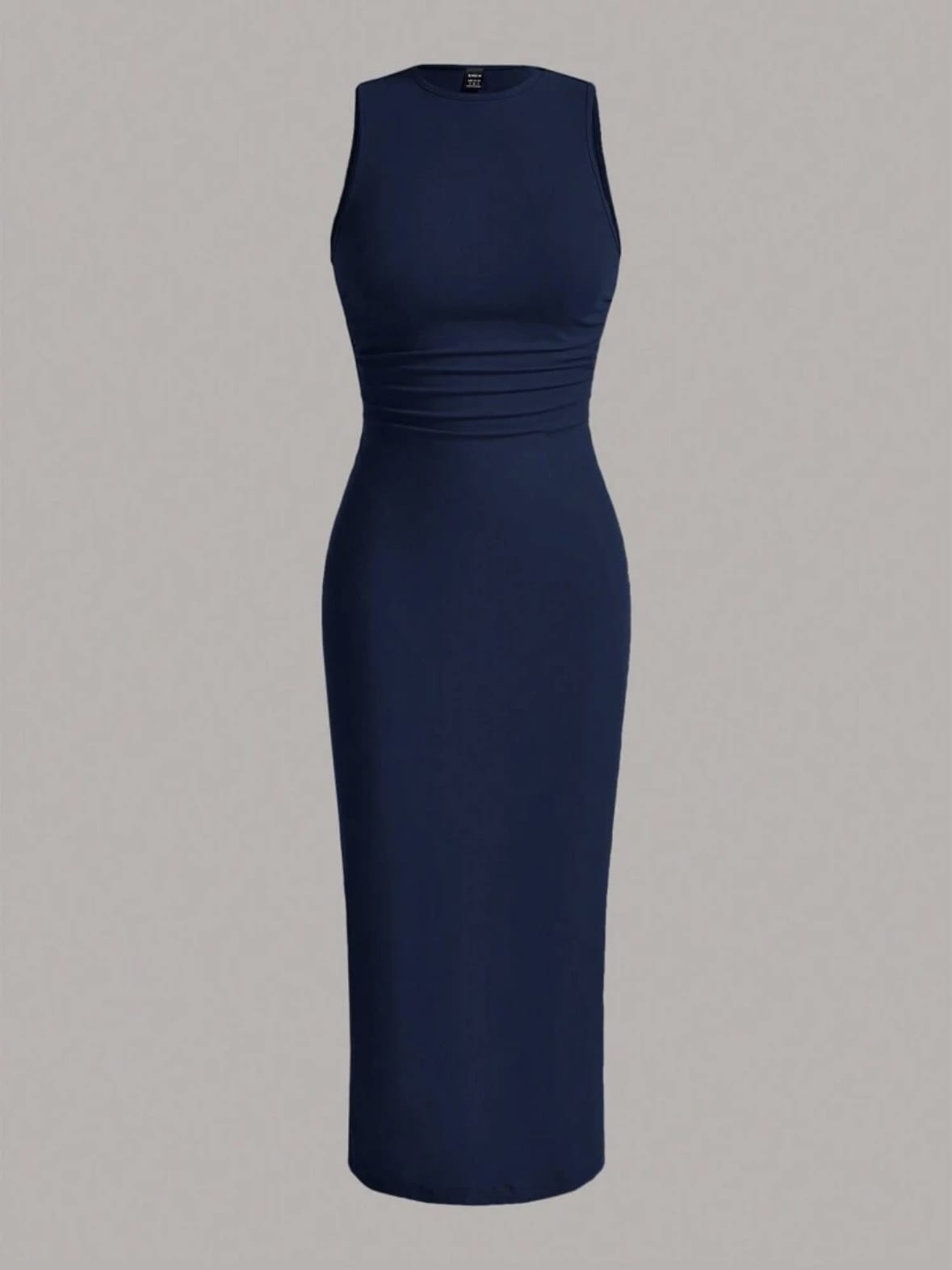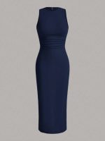 SHEIN EZwear Robe d’été avec taille froncée unie, robes d’été pour femmes