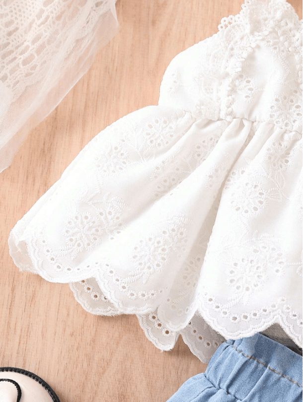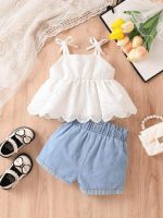 SHEIN Haut caraco à bordure festonnée et nœud aux épaules pour bébé fille et short taille paperbag